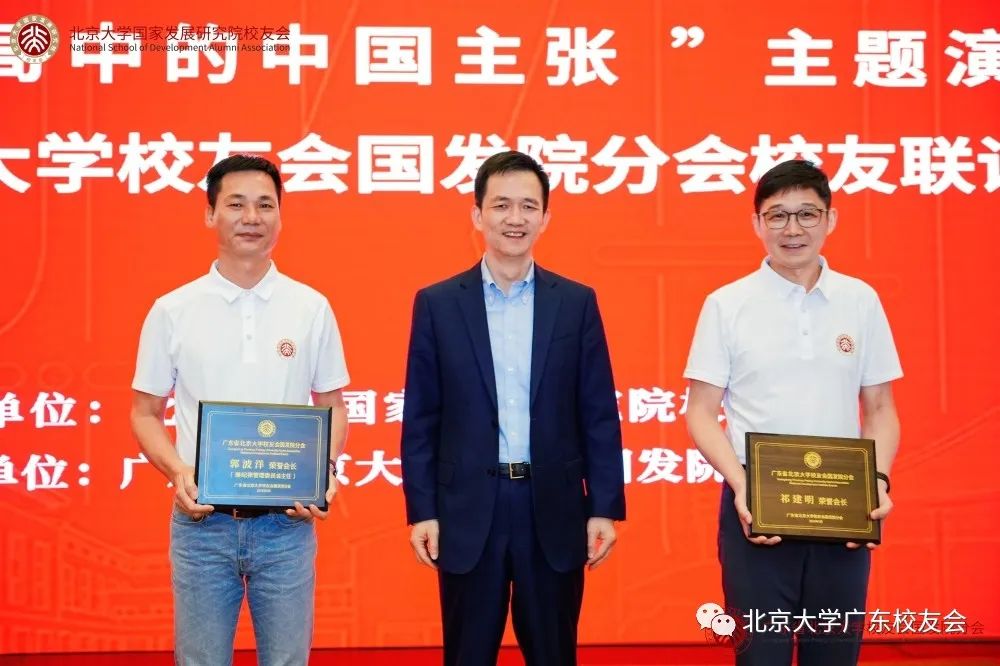 5月14日下午,“全球变局中的中国主张”主题演讲暨广东省北京大学校友会国发院分会校友联谊会在广州番禺隆重举行。北京大学国家发展研究院院长姚洋,北京大学国家发展研究院助理院长、校友部主任程军慧,广东省北京大学校友会会长徐枢,北京大学国家发展研究院校友会总会长周延,广州20多所商学院校友会会长、秘书长以及广州、深圳、佛山、东莞的商会协会负责人和国发院校友代表共计150余人参与了此次盛会。