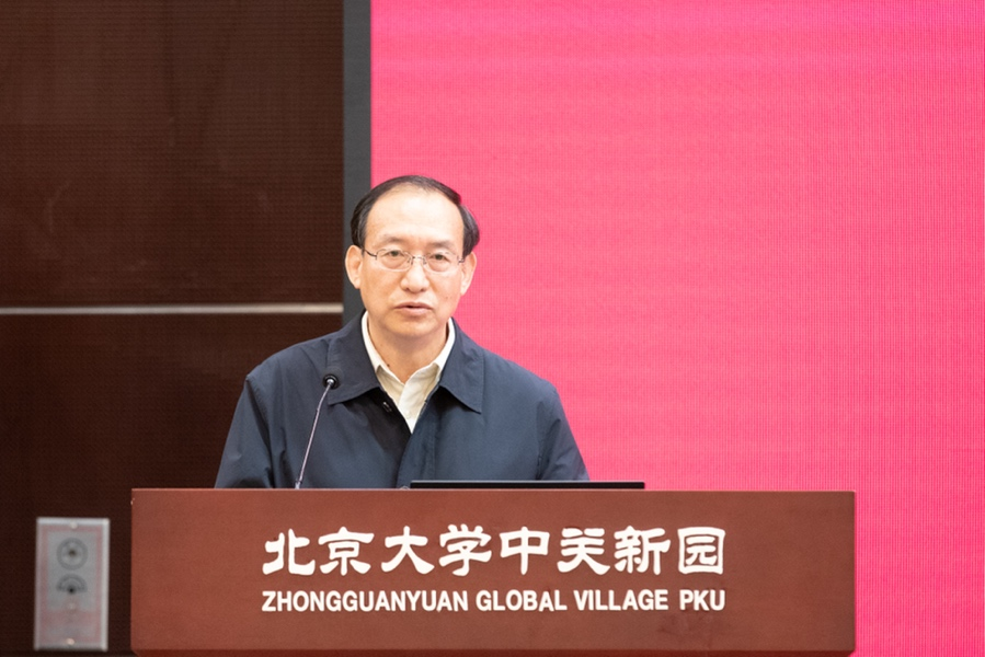 宁杰远介绍大楼筹资情况,重点汇报了小额捐赠情况,截止当日,北京大学教育基金会共收到来自海内外超过123位院友的慷慨捐赠。