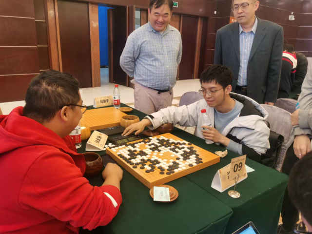 在前三届比赛中,清华校友队在北京赛区一直占有较为明显的优势。但这次北大校友队发挥上佳,上午的比赛异常激烈,双方比分依次攀升。最后结束的第九台对决由北大杨宇轩执黑迎战清华的沈通,比赛十分胶着,收完单官时,黑方只剩下17秒,白方23秒,最后数子,黑方187子,杨宇轩胜2又3/4子。