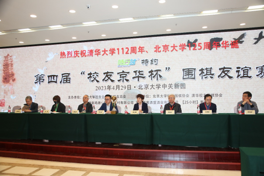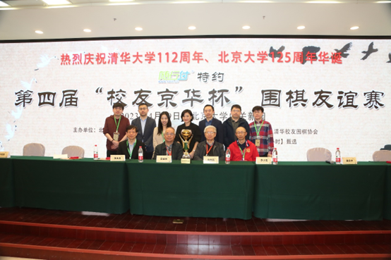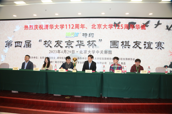 2023年4月29日,由北京大学校友会、清华校友总会共同主办,由北京大学校友围棋协会、清华校友围棋协会携手承办的“随行付”特约第四届“校友京华杯”围棋友谊赛在北京大学中关新园圆满落幕。双方战至最后一盘联棋方决出奖杯归属,最终北京大学校友队惊险获胜,幸运捧回第四届“校友京华杯”。