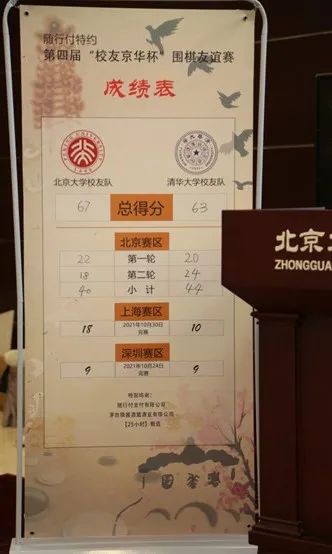 上午的比分,加上此前上海、深圳赛区的分数,北大校友队在第一轮之后以49:39领先清华校友队10分。