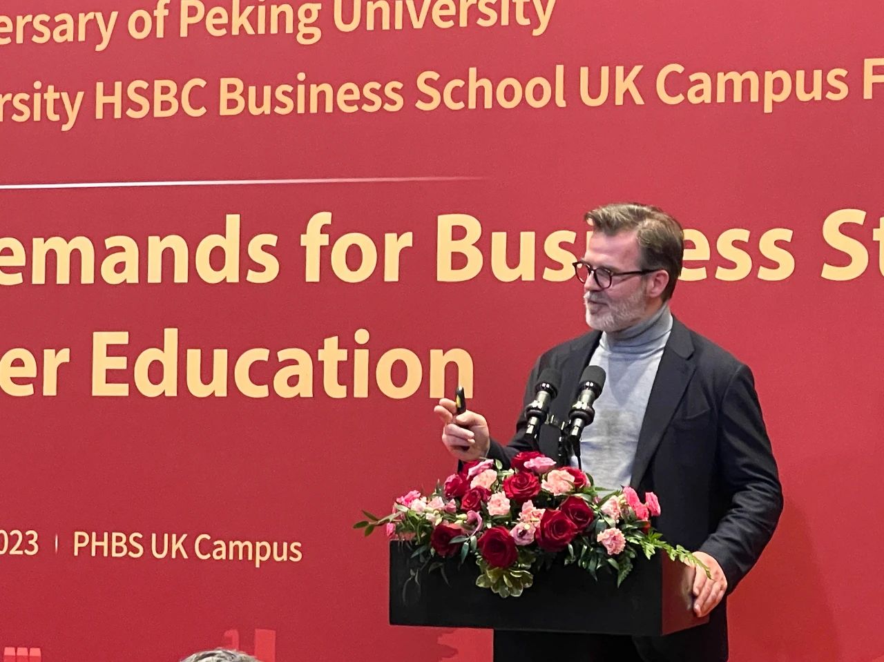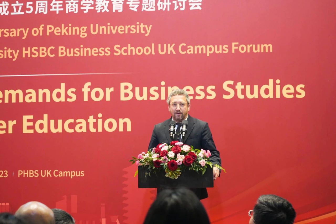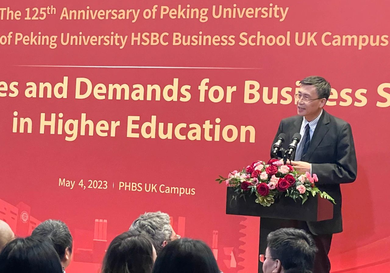 5月4日下午的商学教育专题论坛以“高等教育中商学研究所面临的新挑战与新要求”为主题,来自牛津大学、伦敦政治经济学院、伦敦大学学院、布里斯托大学、QS(Quacquarelli Symonds)、中国建设银行等世界顶尖院校、机构的学者应邀参会。北大汇丰英国校区部分校董,EMBA、MA-PhD项目部分学生,北大汇丰-北大国关合作培养的本科生等近200人参加活动。