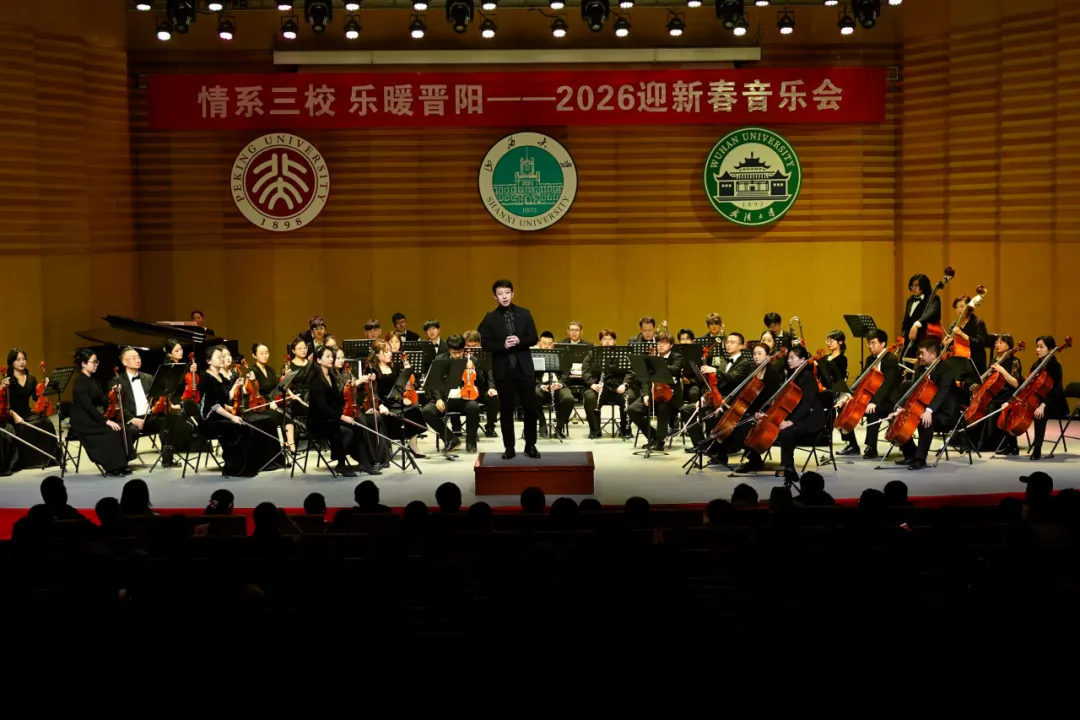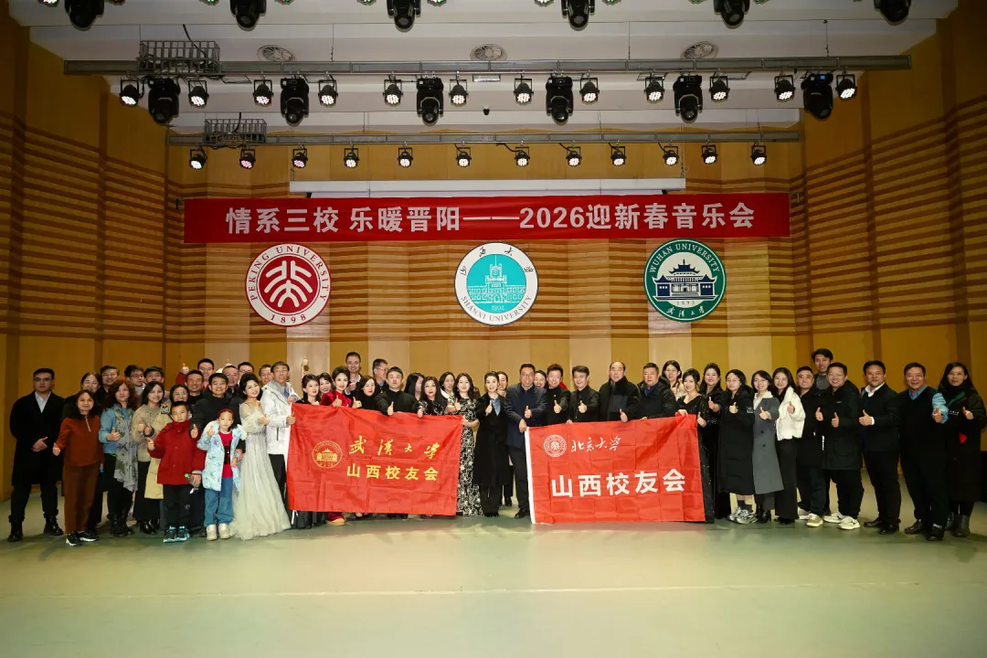 1月31日晚,山西大学音乐厅内乐声悠扬、灯火璀璨。由山西北京大学校友会、山西大学校友会、山西武汉大学校友会联合主办的“2026迎春音乐会”在此举行。三校校友、省内19个兄弟校友会及各界嘉宾500余人齐聚一堂,以音乐为媒共叙校友情谊,以艺术为桥同贺新春佳节。