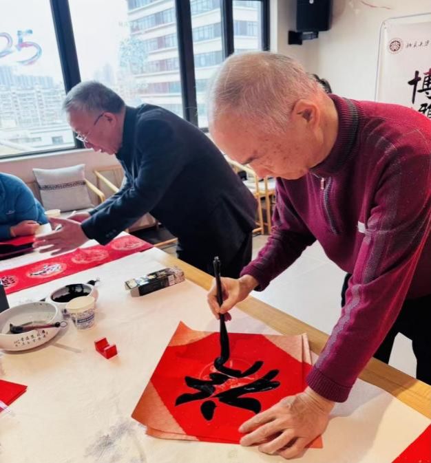 此次活动吸引了数十位校友及家属的热情参与,在墨香氤氲中感受传统文化的魅力。更有校友专程从外地赶来,只为求得一副凝聚着燕园情谊的墨宝,为家门添一抹喜庆,为新年许一份心愿。
