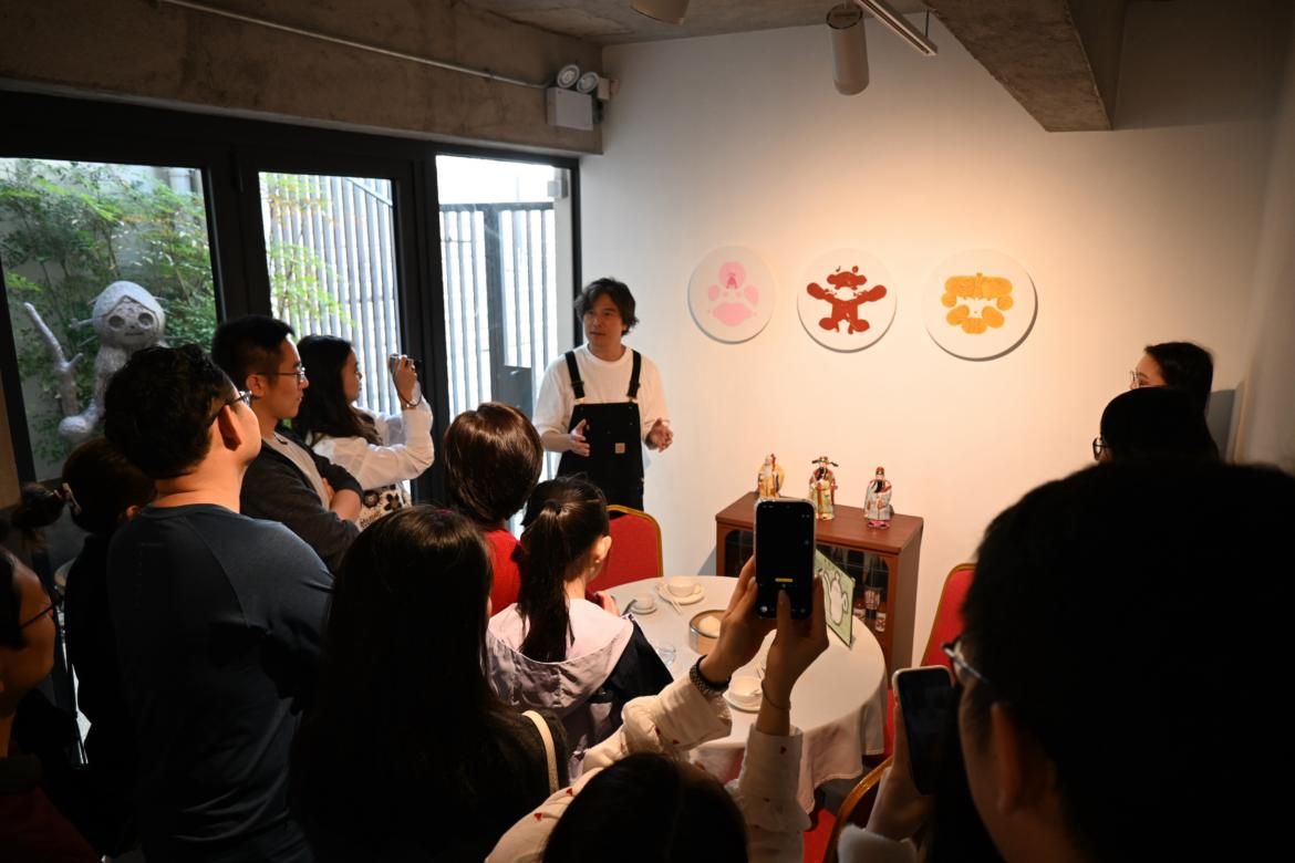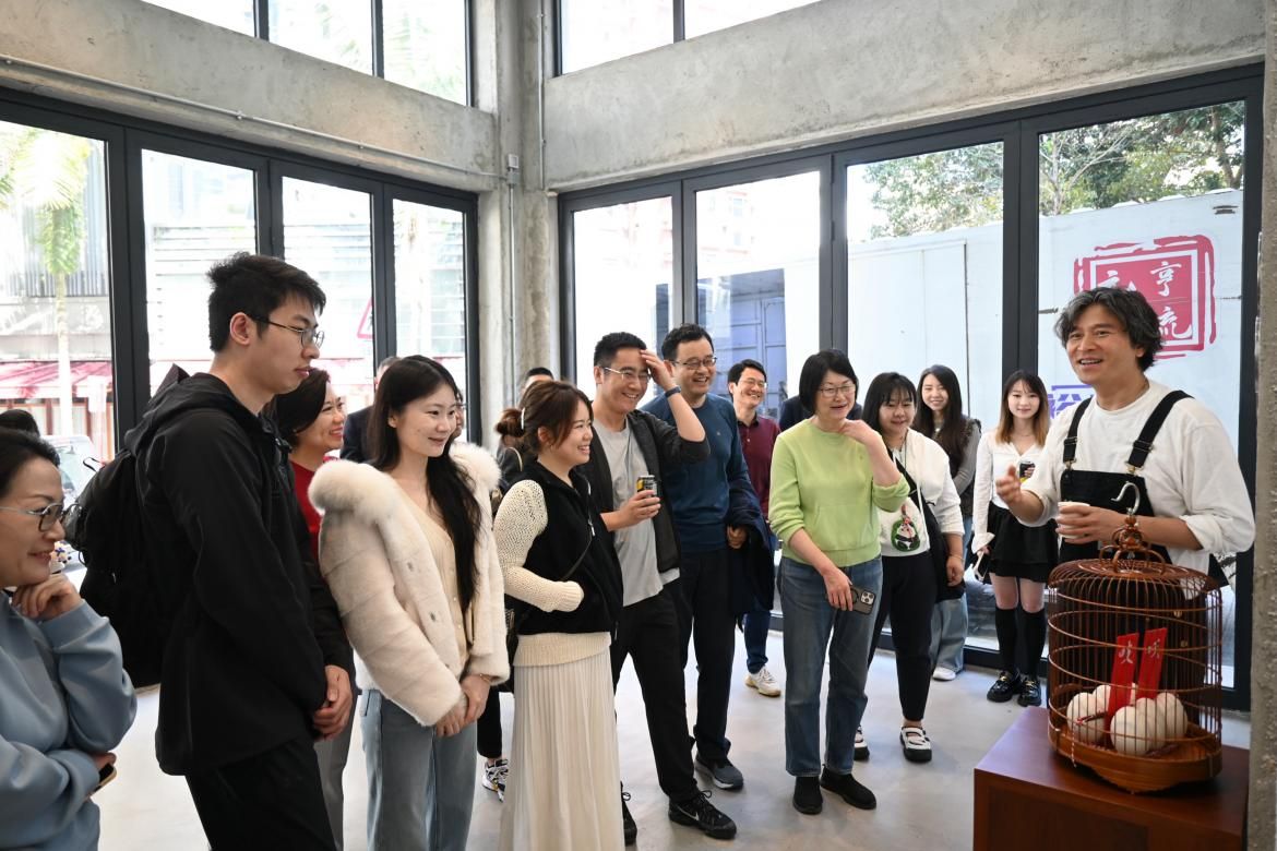 艺术家梁大伟(David Leung)亲临现场,以轻松幽默的方式带领大家深入作品,分享如何将香港经典“饮茶”文化巧妙融入摄影与错觉艺术。竹蒸笼中那些“隐藏面孔”不仅激发了寻宝般的观展乐趣,更唤起大家对老式港味的深厚情怀与集体回忆。现场气氛温馨热烈,校友们在充满巧思的艺术前驻足交流、合影留念,无论是情侣、朋友还是带小朋友的家庭,都沉浸其中,其乐融融。
