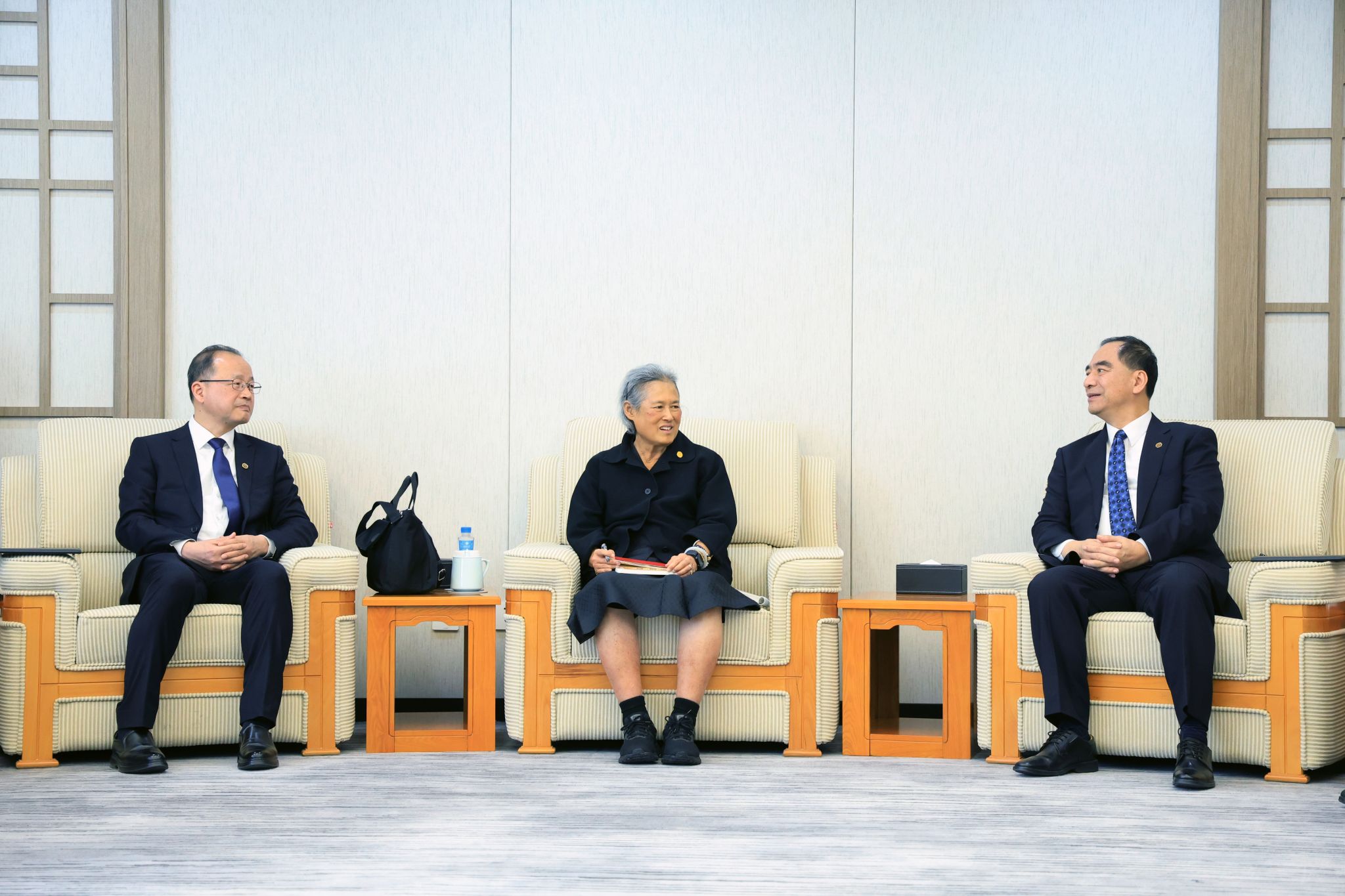 4月11日下午,泰王国玛哈·扎克里·诗琳通公主殿下一行访问北京大学新燕园校区。北京大学党委书记何光彩、校长龚旗煌在学术交流中心贵宾室会见公主一行。泰国驻华大使韩灿才等陪同公主代表团来访。中华人民共和国外交部亚洲司参赞吴骏,教育部国际合作与交流司副司长贾鹏,北京大学党委常委、副校长方方,党委副书记、教务长姜国华等参加活动。