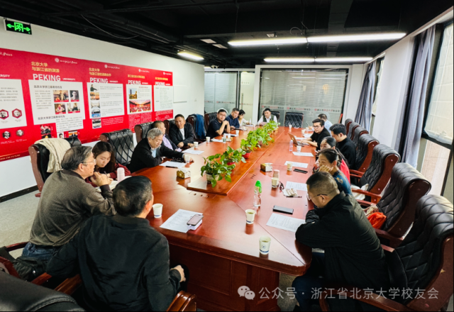 浙江省北京大学校友会今年第二次常务理事会会议于2024年11 月3 日下午在杭州西溪谷校友会本部举行。会议专题研究关于召开浙江省北京大学校友会第一届四次会员代表大会暨年度校友联谊大会的相关事宜。会长陈云峰就大会主要内容和流程提出意见。常务副会长孙家祯就拟做人事调整等事项作情况介绍和相关说明。常务副会长缪雷,副会长徐忠良、王莉、边雪飞、王裕灿、窦晓红、全海峰、陈辉、吴舒出席。常务副秘书长金旭林,副秘书长徐阿梅、冯海涛、吕燕,终身学习俱乐部理事长丁炜列席。