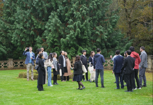 英国校区主任助理韩冰带领校友和嘉宾们参观了展厅,细细回顾了汇丰商学院20年的成长历程。展厅中展示的照片和文字,记录了学院从创立到国际化发展的每一个重要时刻。许多汇丰商学院校友不禁回忆起自己在校时的点滴,感受到深厚的情感联结。随后校友和嘉宾们在校园中尽情游览,雨后的英国校区空气清新、风景如画,缤纷的秋色令大家赞叹不已,感受到了大自然与历史人文的完美融合。