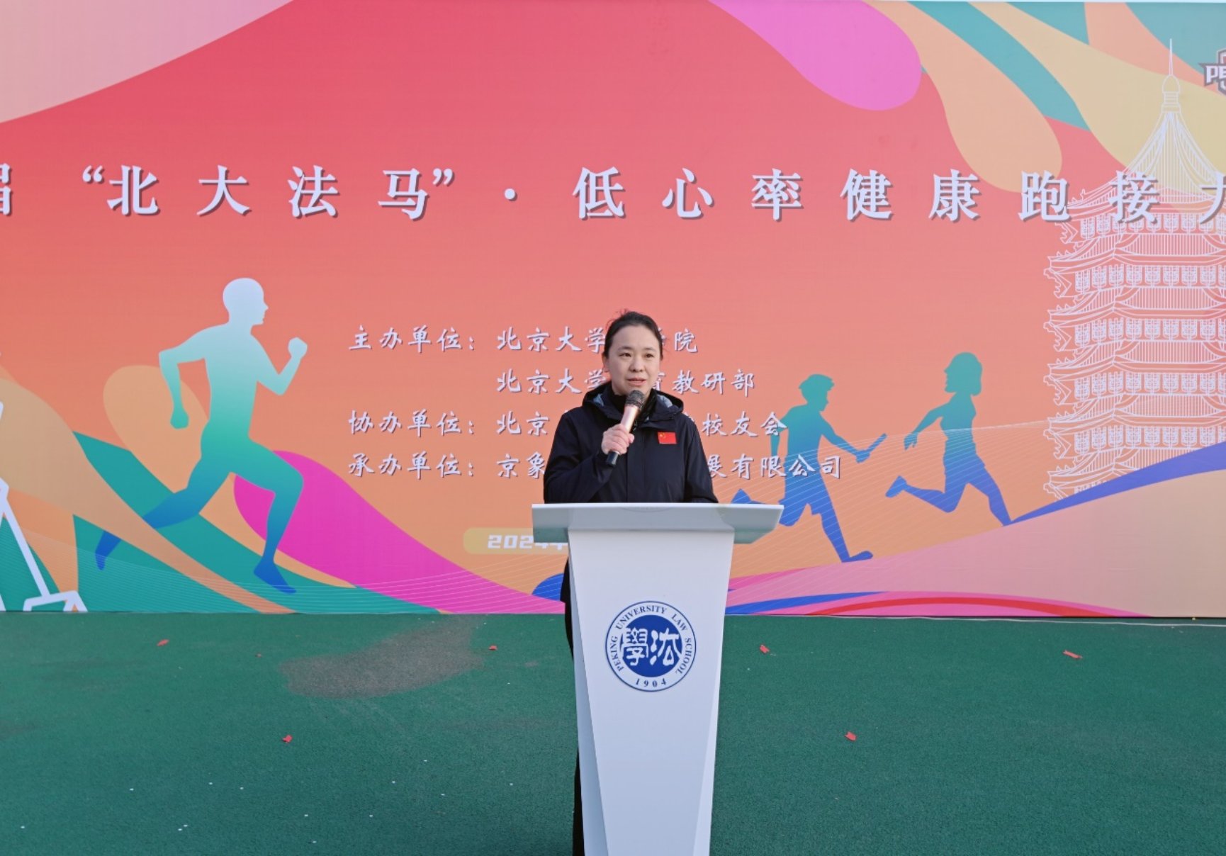 陈征微在致辞中对参赛校友表示热烈欢迎。她表示,北大体育教研部始终全力支持校友文体活动。“北大法马”活动将体育与校友工作紧密结合,将传统马拉松与创新“低心率跑”理念相融合,必将碰撞出独特的火花。她希望参赛者享受比赛,享受体育运动的魅力,致力于成为北大体育精神的塑造者、引领者、传播者。