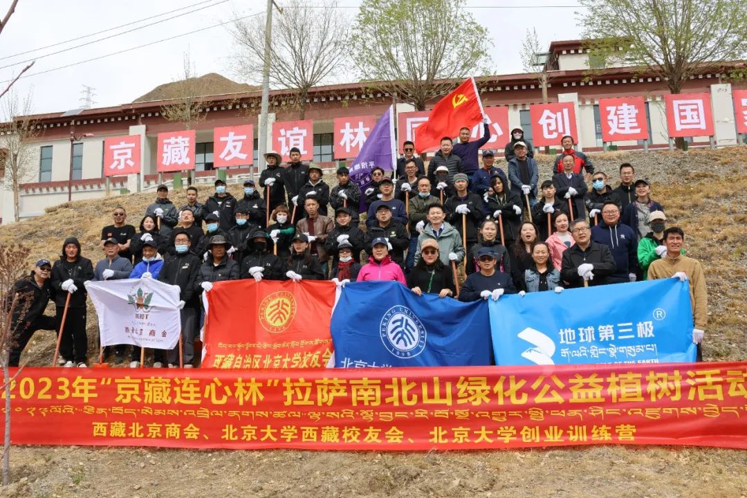 2023年4月22日下午,为牢固树立“绿水青山就是金山银山”的理念,用实际行动创建“国家生态文明高地”“全国民族团结进步模范区”,同时积极迎接北京大学125周年校庆,在拉萨高新区的大力支持下,西藏自治区北京大学校友会(以下简称“西藏校友会”)携手北大创业训练营企业代表、西藏北京商会会员企业等约100名藏、汉、回、满各族热心人士,共同在拉萨开展植树造林活动。