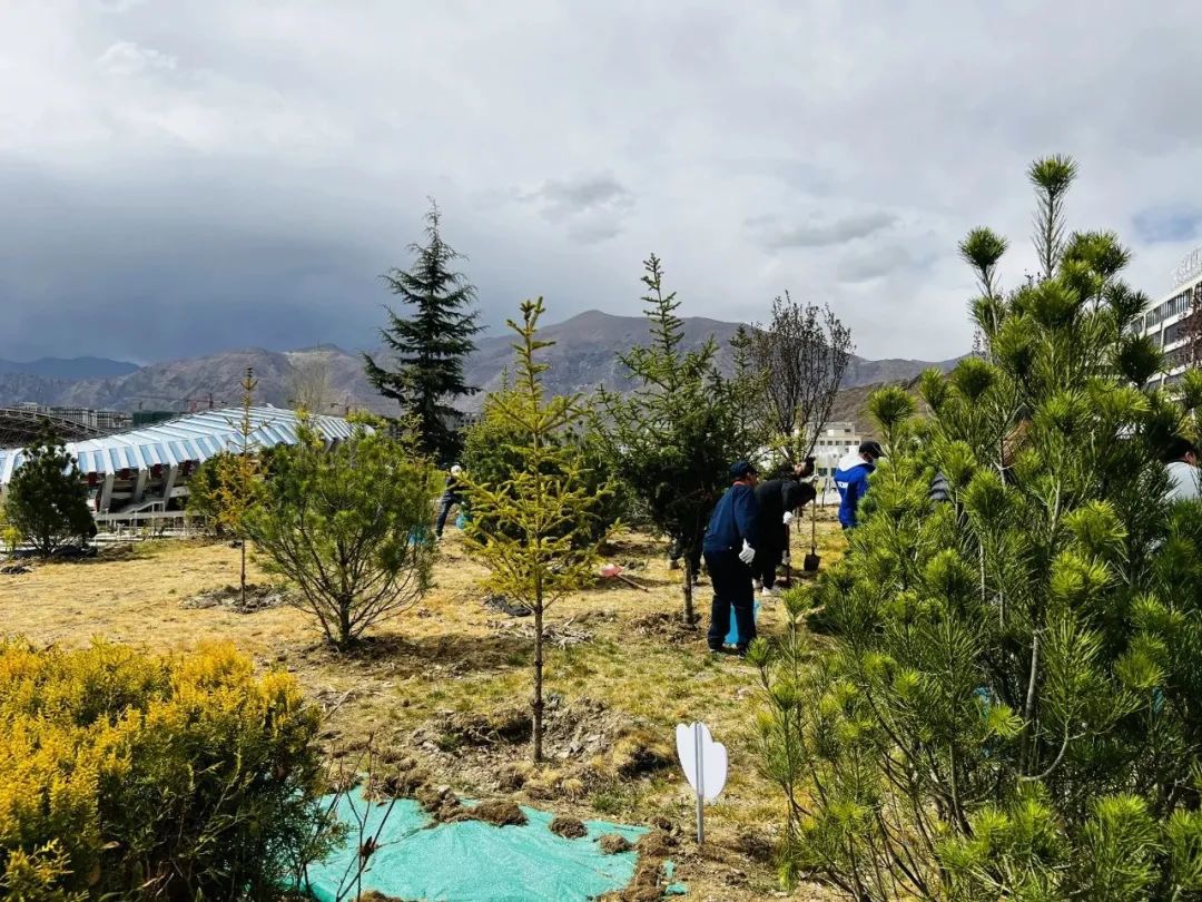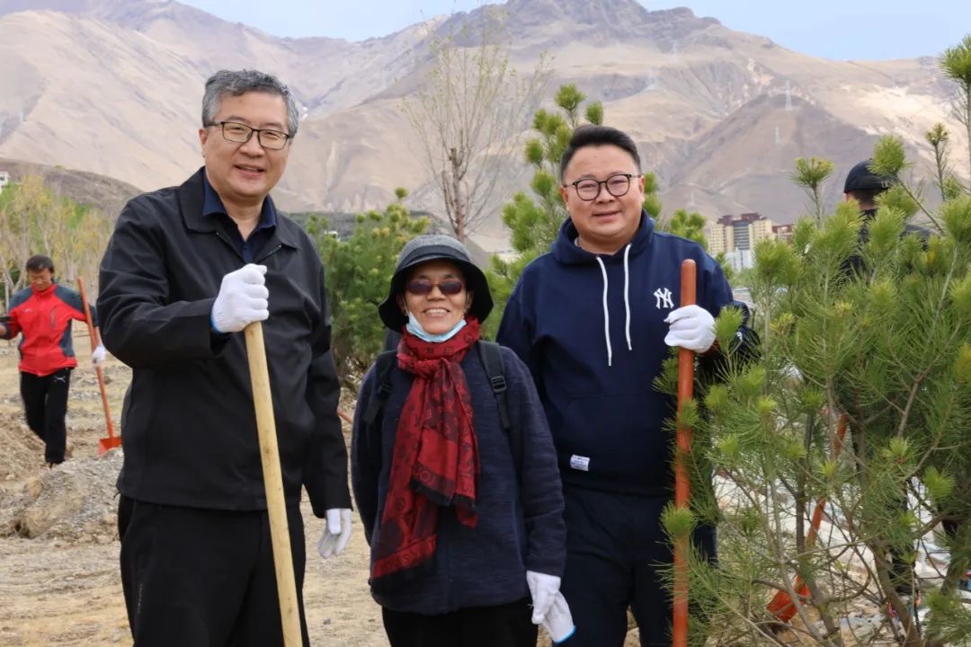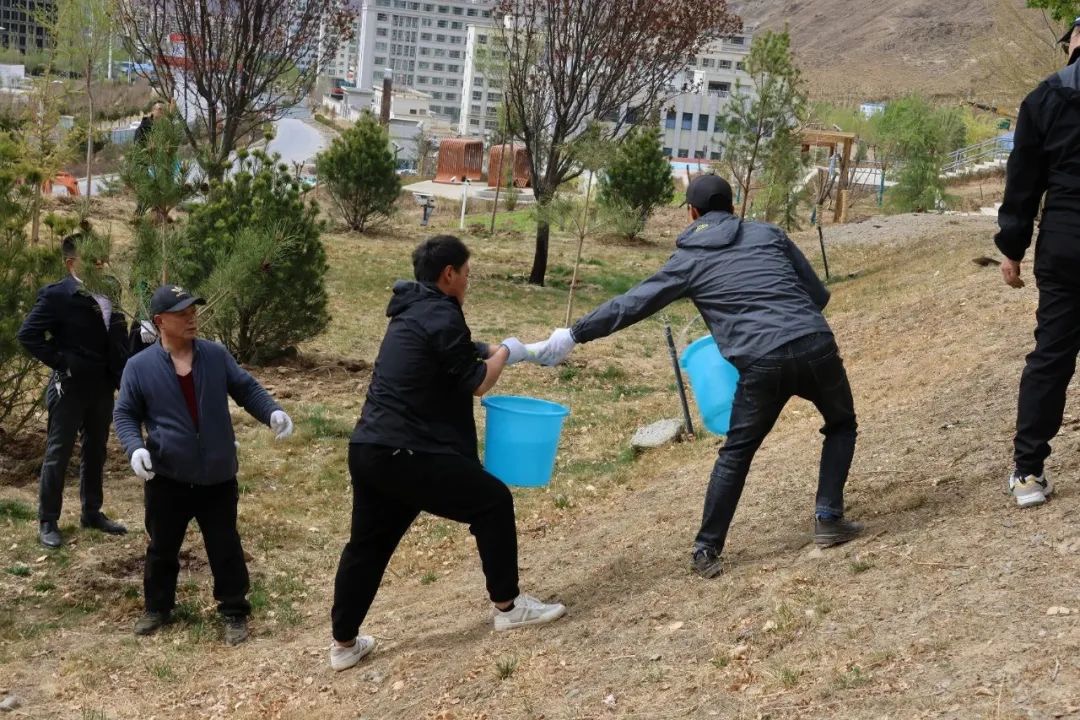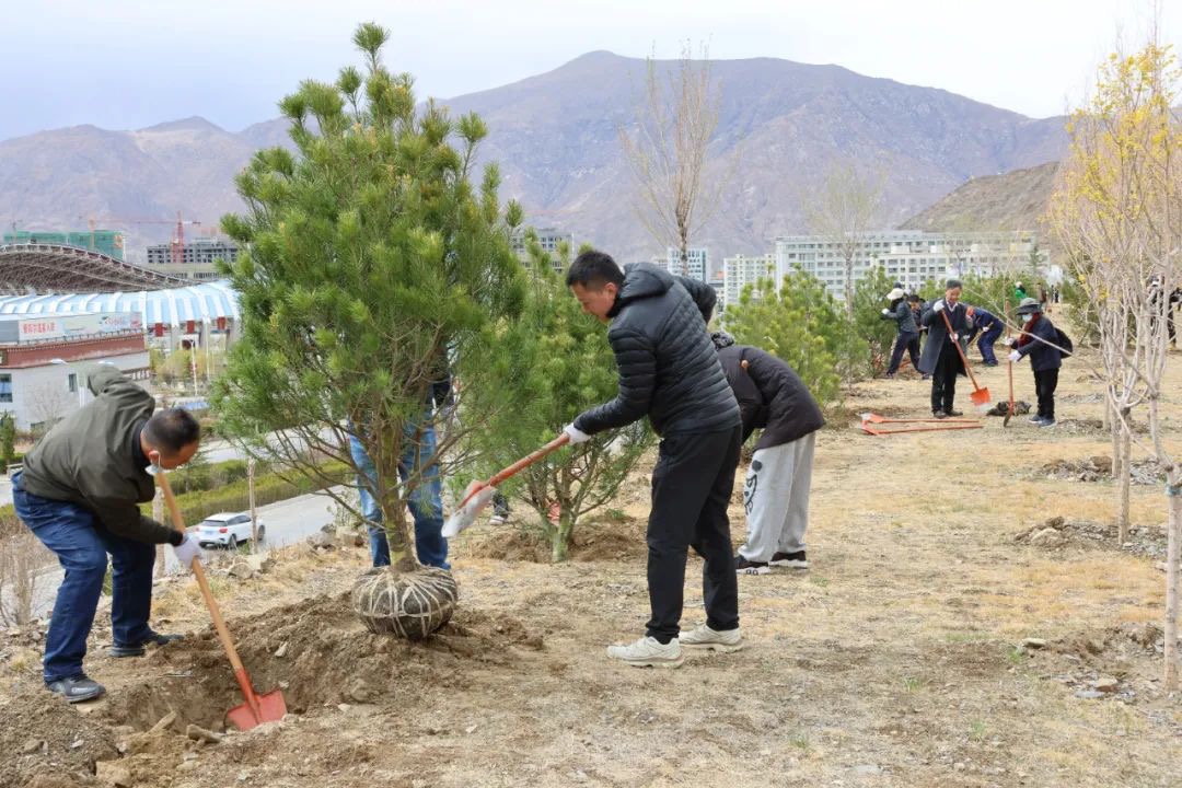 4月22日下午的植树现场,大家挥锹铲土、培树浇水,分工合作,井然有序,一派热火朝天的绿化劳动景象,留下在拉萨的“绿色回忆”。
