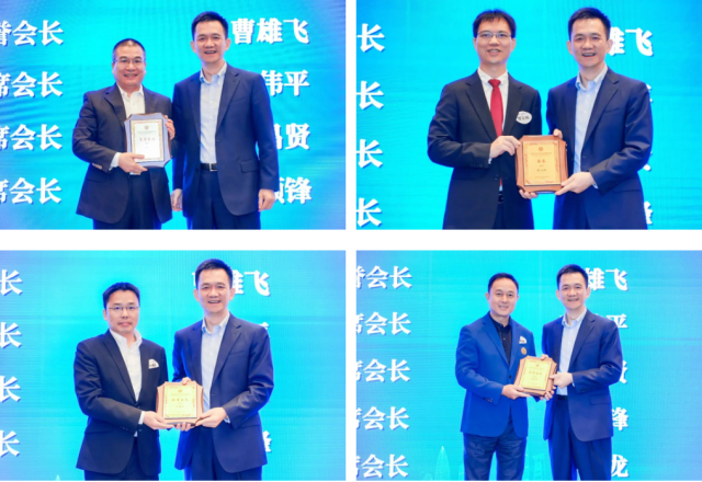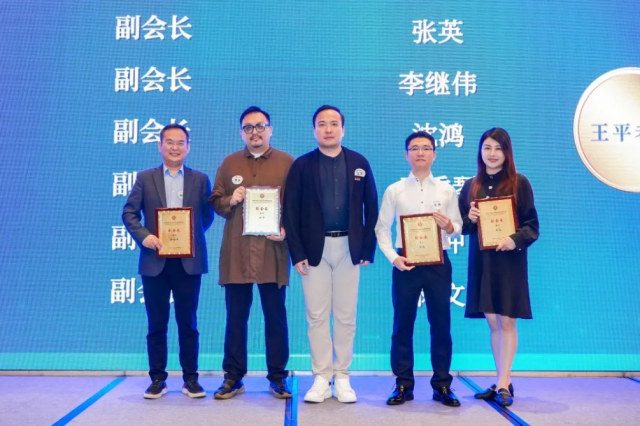 姚洋向荣誉会长曹雄飞,会长陈义枫,联席会长叶伟平、冉昌贤颁发聘书