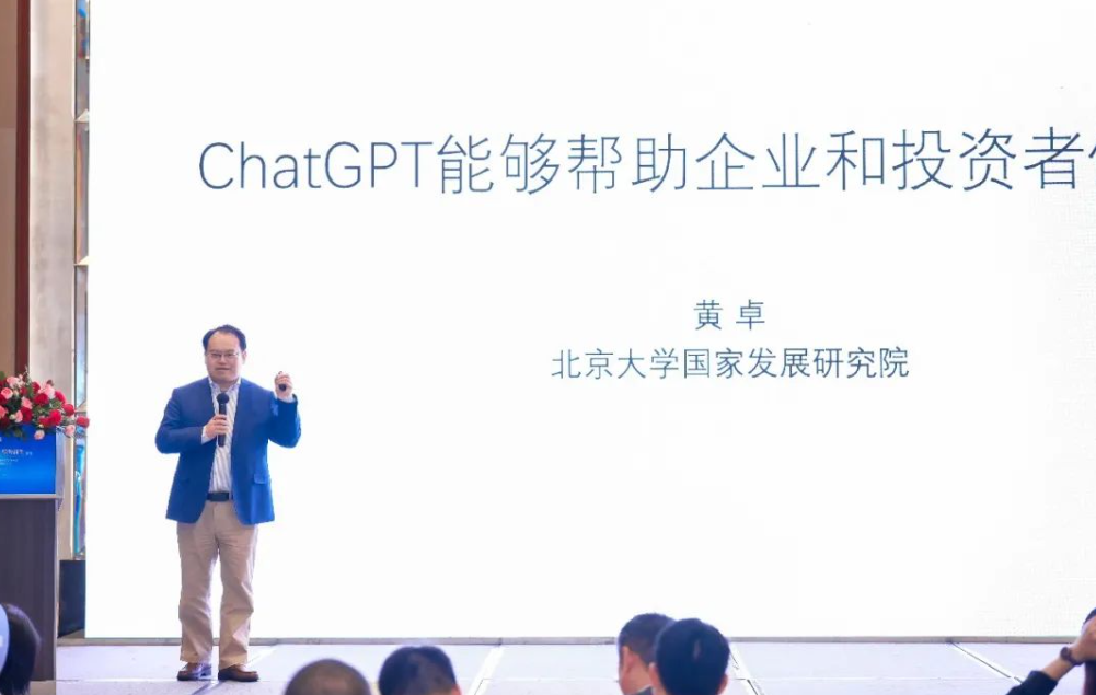 随后,活动进入重磅环节“师生分享会”。在这一环节,北大国发院院长姚洋以“2023年新型国际经济形势及机遇与挑战”为题,为大家带来了他的最新研判与分析。北大国发院教授黄卓针对时下最火热的ChatGPT话题,与大家一同探讨了这一技术如何助力企业和投资者。
