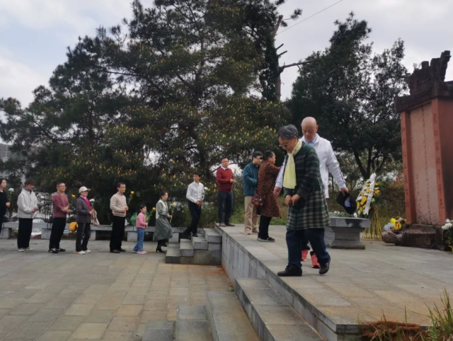 此次拜谒活动共分为扫墓、参观纪念馆、座谈交流、赠书四个环节。下午15时,拜谒仪式开始,校友们集体肃立在李端棻墓前,敬献花篮,深鞠三躬,每位校友依次步行将手里的鲜花奉送至墓前并再次鞠躬敬礼,表达深深缅怀之情。