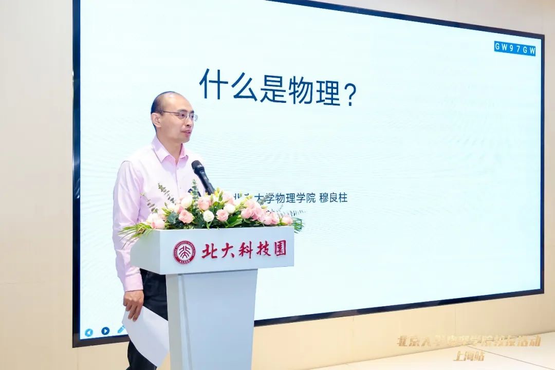 随后,北京大学物理学院党委副书记穆良柱分享了《什么是物理》的主题报告,对物理学研究的内涵与本质进行了解释,并介绍了物理学家如何构建科学认知、何为ETA物理认识模型等。
