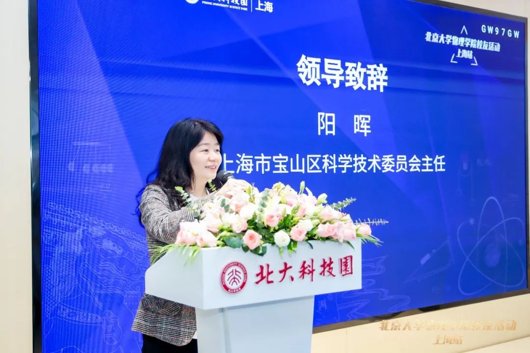 上海市宝山区科委主任阳晖在致辞中表示,宝山区正在全力建设上海科创中心主阵地,促进产业高质量发展;深入推进与北大等知名高校的战略合作,形成了“一核一带两城五园”的科技成果转化格局;同时积极探索“学科+产业”的新型创新模式,依托高校优势学科,加快建设未来产业科技园。当前,以北大物理学院创新源头链接宝山科创热土,共同谱写科创高质量发展新篇章。