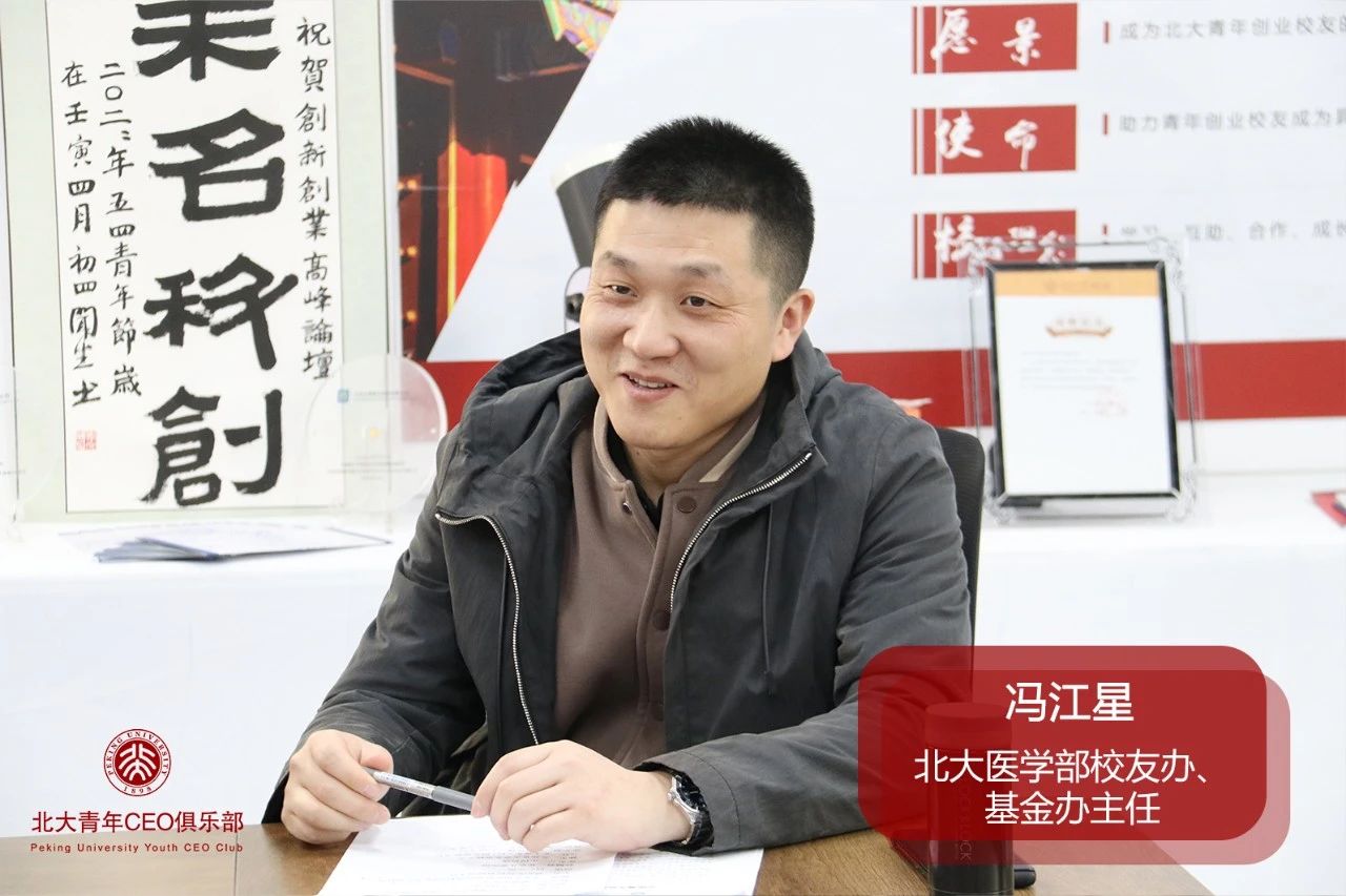 北大医学部校友办、基金办副主任冯江星回顾了北京大学校友青年CEO俱乐部与北京大学医学部的渊源,尤其感谢疫情期间俱乐部为医学部所做的贡献。北医青年创投圈作为由北大医学部校友发起的北医创业、投资、产业、医院等领域校友社群,为北医青年校友搭建了创新创业服务平台,北医校友办将全力支持北医青年创投圈的发展。