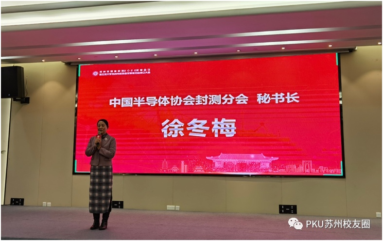 中国半导体协会封测分会秘书长徐东梅对半导体分会表示热烈的欢迎,并高度肯定成立北大苏州半导体分会的重要意义。