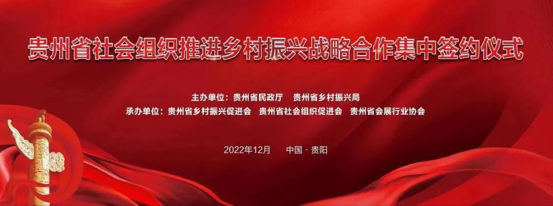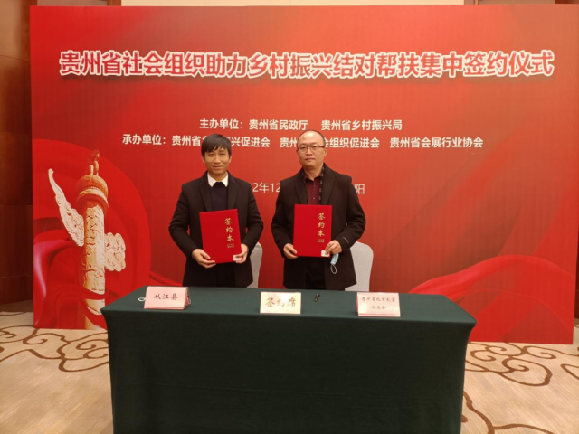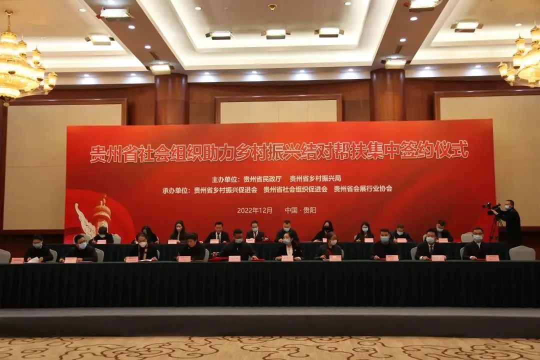 2022年12月6日,由贵州省民政厅、贵州省乡村振兴局主办,贵州省乡村振兴促进会、贵州省社会组织促进会、贵州省会展行业协会协办的“贵州省社会组织助力乡村振兴结对帮扶集中签约仪式”在贵阳举行。