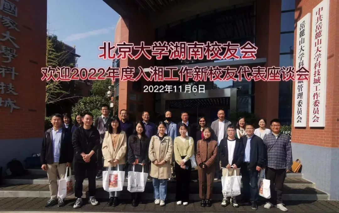 星城正是秋光好,丹桂飘香沐暖阳。2022年11月6日,北京大学湖南校友会欢迎2022年度入湘工作新校友座谈会在岳麓山大学科技城管委会隆重举行。北京大学湖南校友会会长邓映如,副会长王铸铭,副会长兼秘书长匡利娥,党支部书记刘军,副秘书长梅金华、熊炯、李程、王赟、谢丽芳,老学长陈友材及年轻校友周浪、黄雪娟等参加活动。据了解,2022年共有63名北大毕业生来湘工作,包括选调生,以及在高校、科研院所、上市公司、文化传媒机构等工作的新校友。
