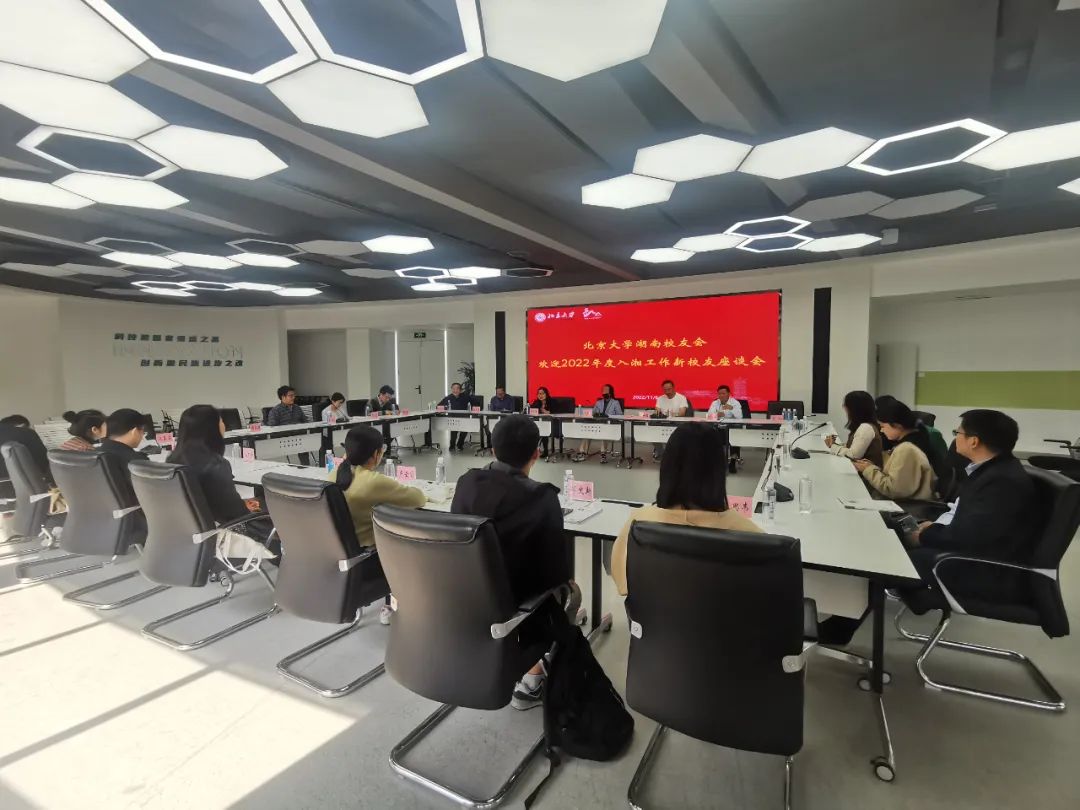 座谈会由匡利娥主持。她代表北京大学湖南校友会欢迎新校友来湘工作并加入校友会。刘军介绍北京大学湖南校友会的创会历史、分会设立情况、五大品牌活动,以及在湘工作北大校友情况。他祝愿新入职校友尽快适应新环境、新工作,欢迎大家积极参加校友会各类活动,在校友会大家庭中获得温暖和力量。李程也对校友会的工作做补充介绍。