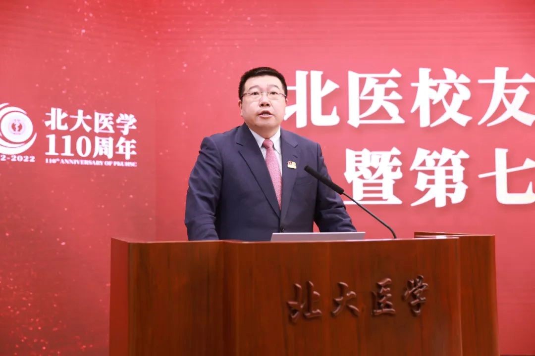 党的二十大是我国进入全面建设社会主义现代化国家新征程的标志,二十大报告中强调要实施科教兴国战略,强化现代化建设的人才支撑,指出要增进民生福祉,提高人民生活品质,这要求北大医学人要心系人民健康,持续推进健康中国战略,以创新为引领,推动学科建设和科学研究,深入实施人才强国战略。乔杰在报告中提到,回顾北医110年的历史,抗美援朝、组团式援藏,支援扶贫都有北医人积极投身到中国特色社会主义建设伟业中的身影,在汶川地震、玉树救援、抗击非典、新冠疫情的斗争中,北医人道济天下,护佑生命。乔杰从医学生教育、创新人才培养模式与路径、学科建设与培养、社会形象与使命担当等方面介绍了北大医学的发展概况。展望前路,乔杰对北大医学的设施建设着重介绍,并再次感谢校友对北大医学发展的关心和支持,期待有更多校友与学校一起为北大医学的发展赋能。