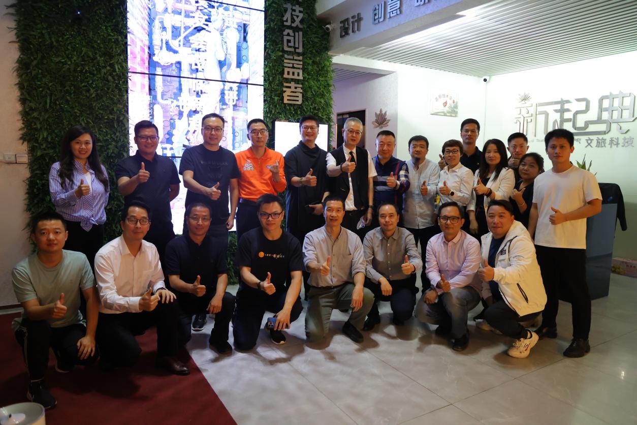 2022年10月20日,应北京大学社会学系1990级本科校友马俊峰的邀请,广东省北京大学校友会创业分会、传媒分会一行在广东省北京大学校友会常务副会长江波的带领下,赴广州新起典文旅科技有限公司参观,并进行座谈交流。