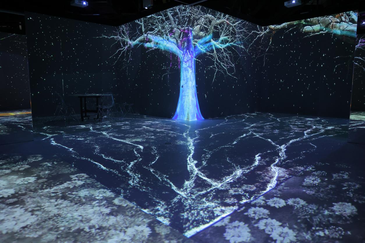 新起典历时2年,耗资数百万打造的国内首个沉浸式光影展厅,集合了沉浸式LED、影像交互、VR体验、AR体验、裸眼3DMAPPING、全息投影、激光秀、集成中控系统等多媒体声光电设备。