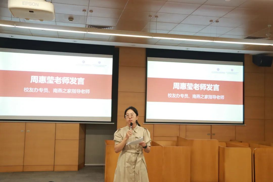 周惠莹作为指导老师分享了自己从事校友工作的收获。她提出,知识和工作上的能力不难获取,但是精神上的滋养,特别是有力量的观点和思考,是北大和北大人的独特财富。她希望同学们充分利用好南燕之家的平台,多和杰出校友交流学习,增进与南燕之家同学们的交流合作,从校友和朋辈身上汲取向上的力量,获得共同成长。