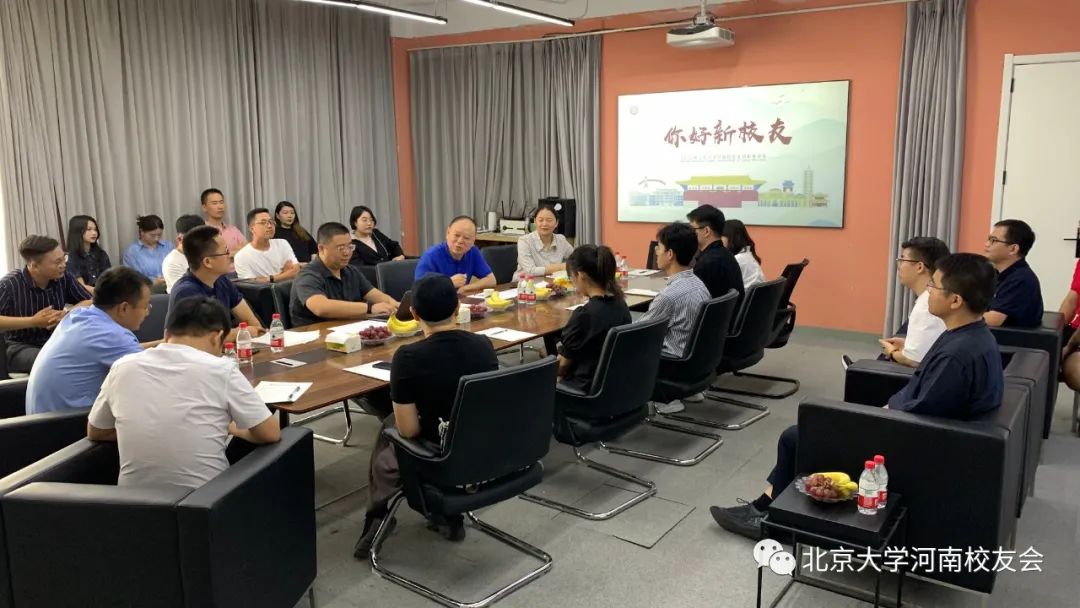 2022年9月4日,为了欢迎北京大学2022届毕业生和选调生来豫工作,以及帮助新校友更好更快地融入工作和生活,北京大学河南校友会在郑州举办了2022年迎新座谈会。北京大学河南校友会会长薛德星、历届校友代表和新校友代表欢聚一堂,共叙北大情怀,共谋未来发展。座谈会由北京大学河南校友会秘书长李睿主持。