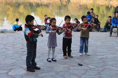 悠扬的琴声与激昂的鼓点引来了校内外师生的围观。音乐会中穿插着西方古典音乐和中国传统音乐,也有野性的手鼓曲和悠扬的探戈。从刚上小学的小朋友到年逾的花甲的老者,都立于花神庙周围,享受音乐带来的乐趣。在不停的欢呼与鼓掌中,现场气氛也逐渐达到高潮。曲目奏毕,观众们纷纷表示意犹未尽,一位考古文博学院的退休老教授专门找到负责同学,表达了欣慰之情:“从未在湖畔听过琴声,今天在这里欣赏了如此精彩的一场演出,实在是很惊喜。我觉得这种活动形式非常好,它让音乐走进了燕园里每一位师生的生活。希望你们能把这样的活动办下去,让更多的同学听听音乐。”