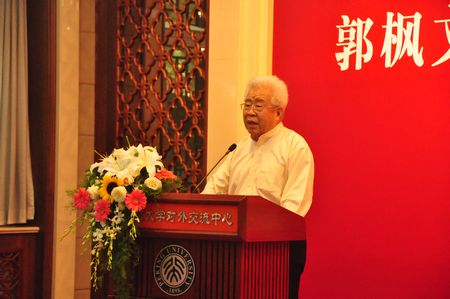 5月25日,郭枫文学创作与文化交流研讨会在陈守仁国际会议中心召开。此次研讨会由北京大学中国诗歌研究院、北京大学中国新诗研究所、北京大学中国语言文学系联合主办。郭枫先生及苏叶女士,中文系谢冕教授、孙玉石教授,北京大学宣传部部长蒋朗朗教授,中文系主任陈跃红教授及文学界、诗歌界诸多学者出席会议。陈平原教授主持会议。