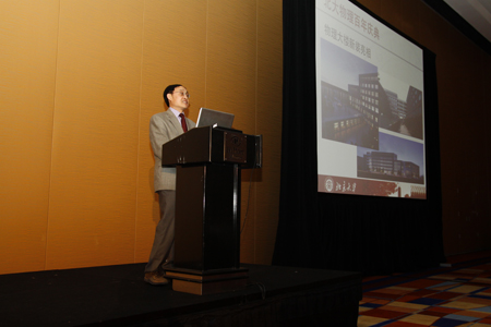 在3月20日举办的北京大学、复旦大学、南京大学、清华大学、中国科技大学5校联合招待会上,北大物理学院院长谢心澄教授向到场的近600位嘉宾及校友介绍了学院的发展近况,以及在开放型平台建设和高层次人才引进等方面已取得的显著成绩。