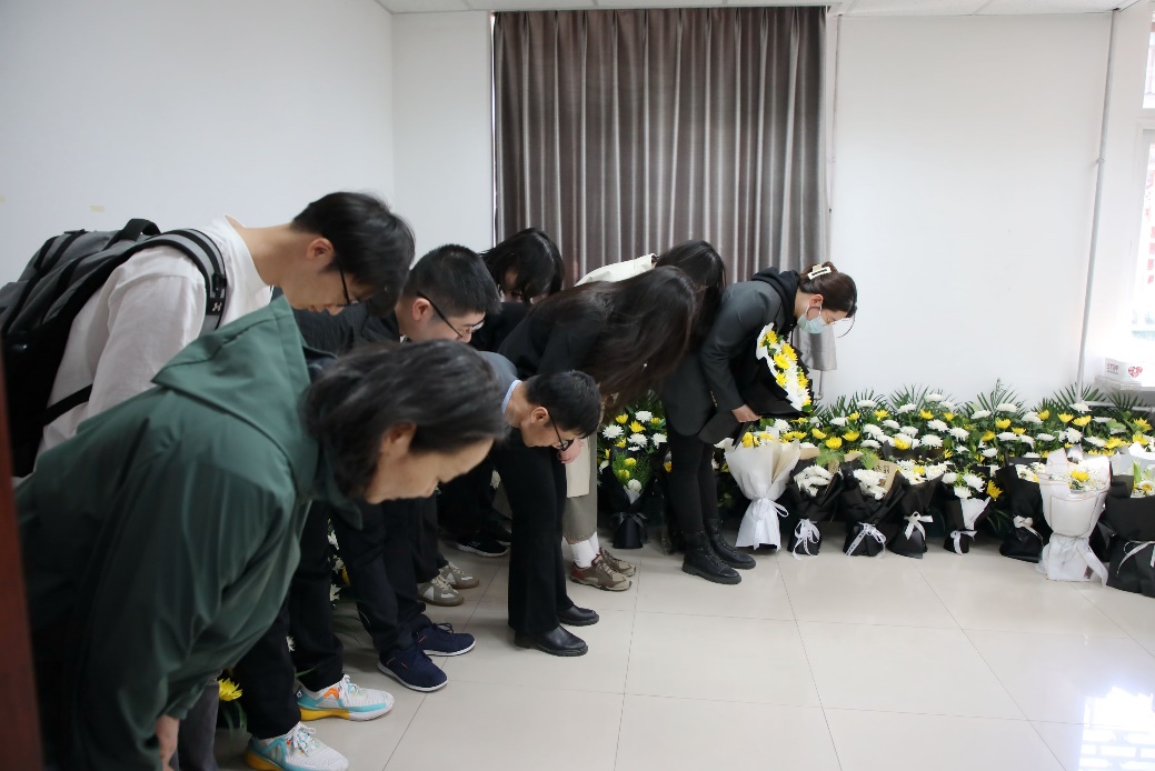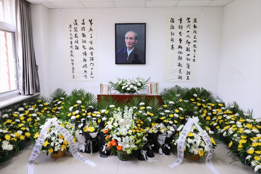 4月15日下午,考古文博学院在红五楼布设的严文明先生灵堂正式开放。严文明先生的遗像前,鲜花簇拥着先生的著作,严文明先生亲友、北大师生校友、考古文博界人士送来的鲜花、挽联布满四周。