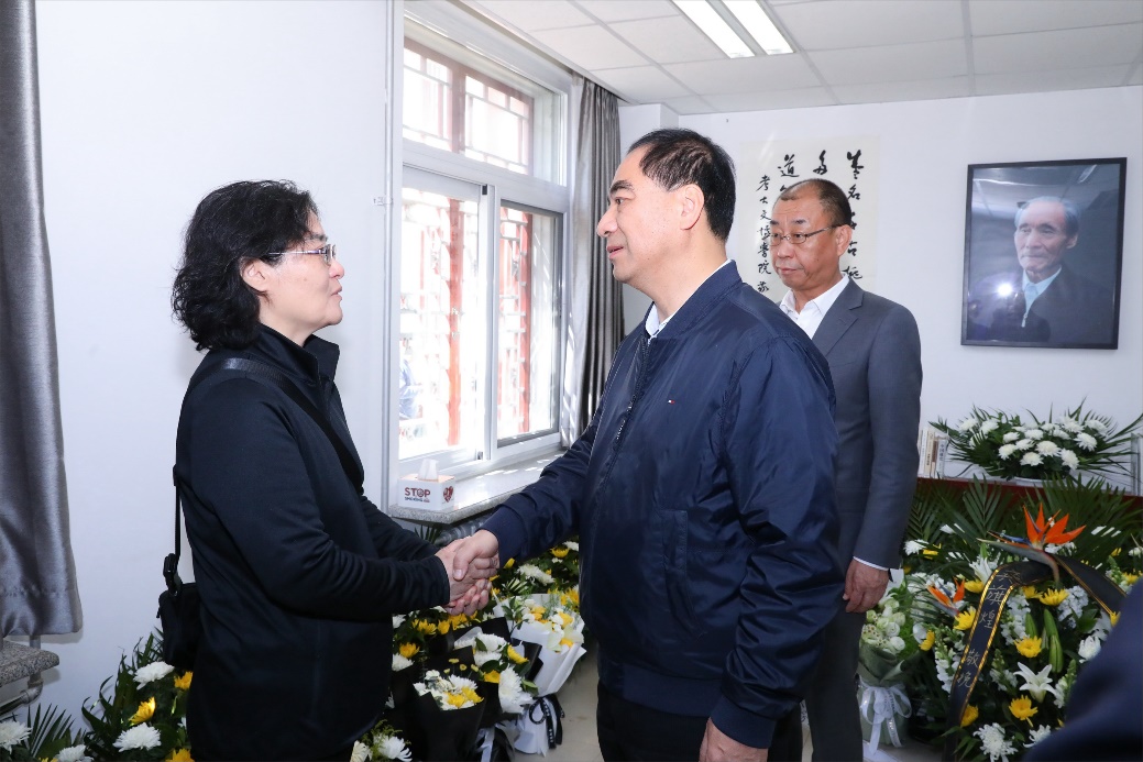 4月16日,郝平、龚旗煌、王博、姜国华等校领导来到灵堂,对着严文明先生的遗像深深三鞠躬,并敬献花篮。之后,郝平等在学院领导陪同下,前往严文明先生家中,向家属表示慰问。