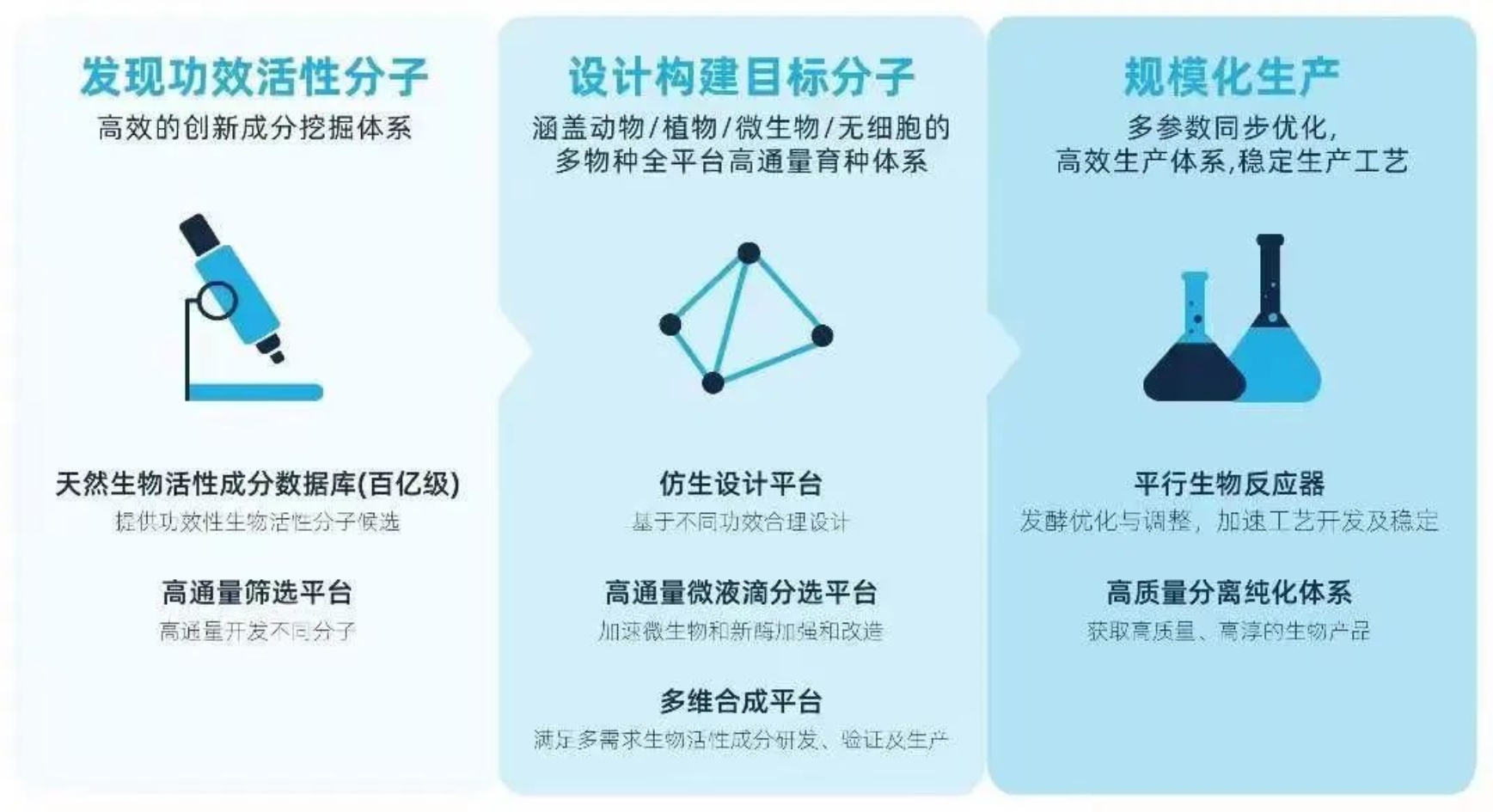 项目简介:未名拾光以生物合成技术为驱动力,专注于美妆个护领域生物活性材料创新研发和生产制造,在发掘高价值生物活性成分的基础上,依托下一代生物合成技术实现了生物活性材料的低碳制造生产。未名拾光结合人工智能与数字技术,建设植物、微生物与人体天然活性分子数据库,自主搭建高通量筛选、生物合成和仿生设计平台,打造生物智造创新全链条。作为兼具原料开发、功效评价和原料生产能力的生物技术公司,未名拾光目前已量产20余种全新的活性成分,包含1型、3型、17型胶原蛋白以及多种珍稀植物代谢产物,有望成为具有全球领先创新能力的生物活性材料供应商。