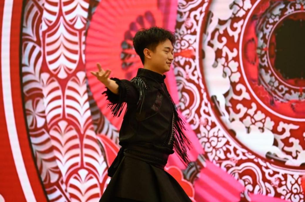 北大学子在欢迎仪式上表演歌曲《如愿》《外婆的澎湖湾》