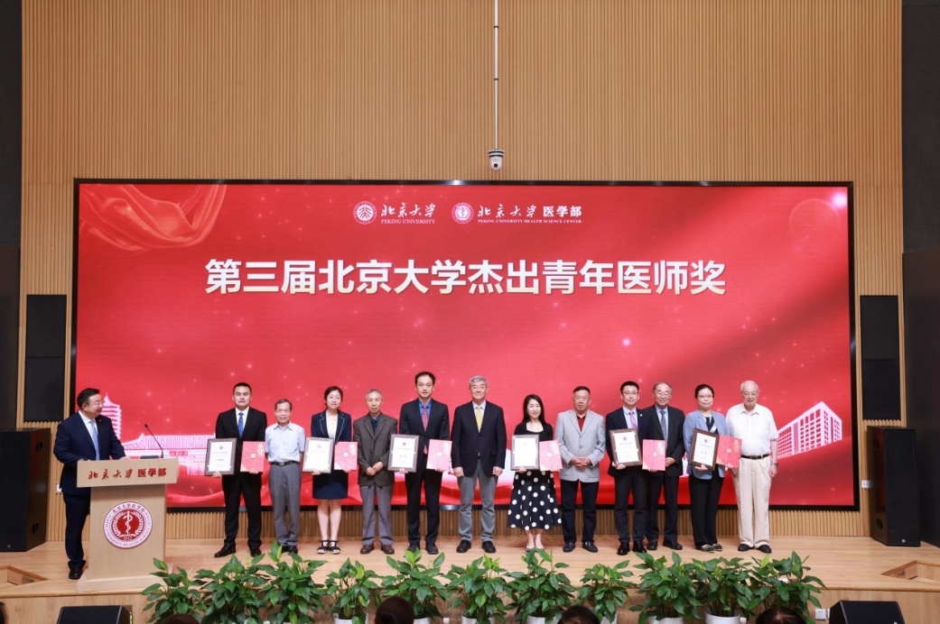 8月15日下午,“医者仁心,大爱无疆”北京大学医学部庆祝第七个“中国医师节”暨第三届北京大学优秀青年医师奖颁奖大会在医学部科技楼报告厅举行,图为领导嘉宾为杰出青年医师奖获得者颁奖