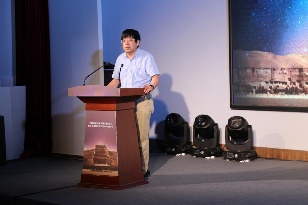 北大历史学系教授、敦煌学研究专家荣新江作为学界代表发言。他回顾了樊锦诗对敦煌学研究作出的巨大贡献,并对她身上集中凝练体现的坚守大漠、甘于奉献、勇于担当、开拓进取的莫高精神表达了深深的崇敬之情。
