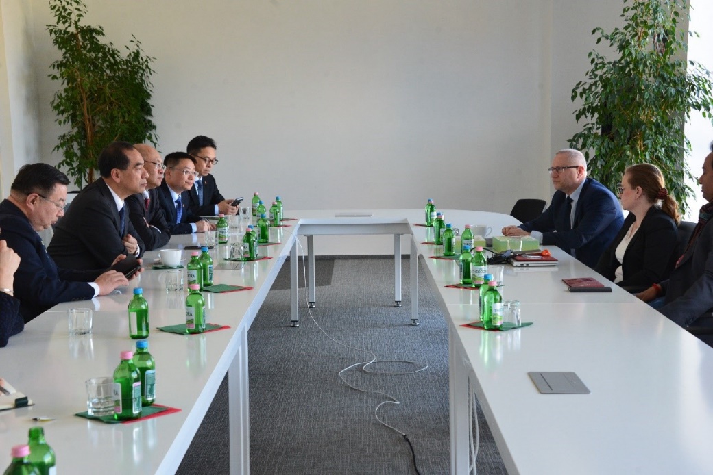 在维也纳大学,塞巴斯蒂安•舒策(Sebastian Schütze)校长会见龚旗煌一行。中国驻奥地利大使亓玫一同参访。北京大学和维也纳大学是长期的合作伙伴,双方均希望继续在共同感兴趣的领域加深合作。龚旗煌邀请维也纳大学知名学者参加北京论坛、加入数智教育发展国际大学联盟等学术平台,巩固两校战略合作关系。
