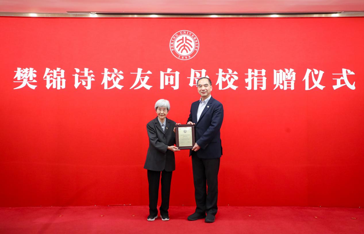 龚旗煌代表学校向樊锦诗校友授予北京大学杰出教育贡献奖