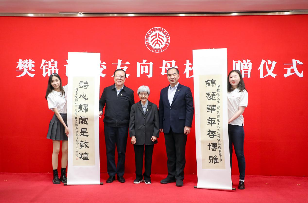 郝平、龚旗煌向樊锦诗校友致赠纪念品