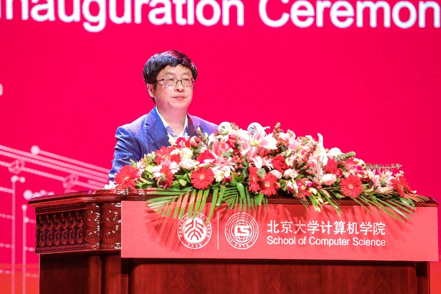龚旗煌代表学校向计算机学院的成立表示祝贺。他指出,北京大学成立计算机学院,是贯彻落实习近平总书记重要讲话精神、服务国家发展的重要部署,也是深化多学科交叉融合、加快推动我国计算机学科发展的重大举措。龚旗煌代表学校对办好计算机学院提出三点要求:一要围绕立德树人根本任务,不断深化人才培养;二要聚焦计算机科学的前沿领域,提升原始创新能力;三要打造世界一流人才高地,发挥引领示范作用。他希望计算机学院建设好计算机学科的一流平台,凝聚起一批世界级的计算机科学家,与各兄弟高校、科研院所、高新企业一起发愤图强、奋力前行,共同开展科学研究和成果转化工作,构建新型创新共同体,为提升我国信息产业自主创新能力贡献北大力量。