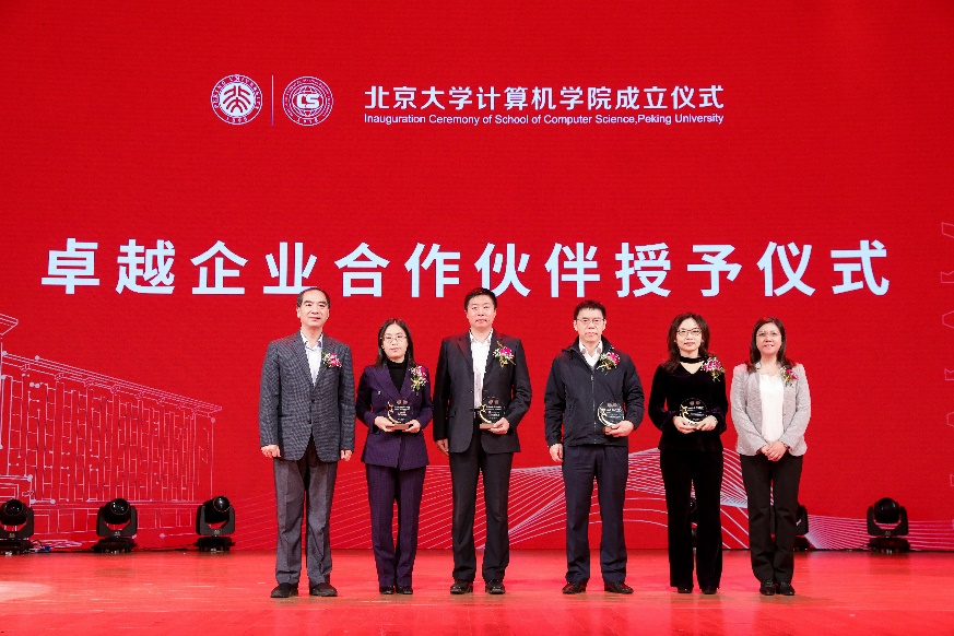 现场举行了北京大学计算机学院与腾讯公司、中兴通讯股份有限公司、华为技术有限公司和阿里巴巴集团的卓越企业合作伙伴授予仪式。计算机学院的发展和信息产业的发展息息相关,建立计算机学院的宗旨之一就是要深化与企业的合作,推进科研成果转化,培养高层次创新人才。北大计算机学科长期与多个领军企业保持紧密合作,共同为我国信息产业发展作出重要贡献,也结下深厚友谊。学院成立后,在之前的合作基础上,双方将进一步加大和深化合作,携手为信息产业发展作出更大贡献。