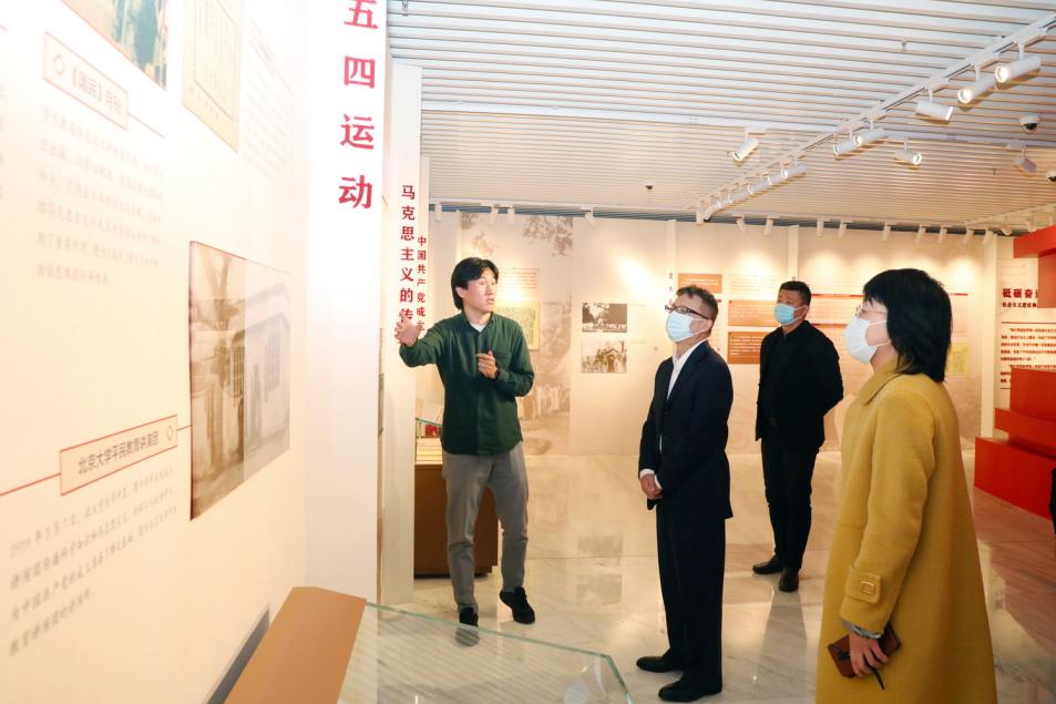 王博与朱宝霞代表双方签订战略合作协议。郝平与周树春代表双方互赠纪念品。签约仪式结束后,周树春一行来到北京大学图书馆参观“北京大学庆祝中国共产党成立100周年主题展览”。