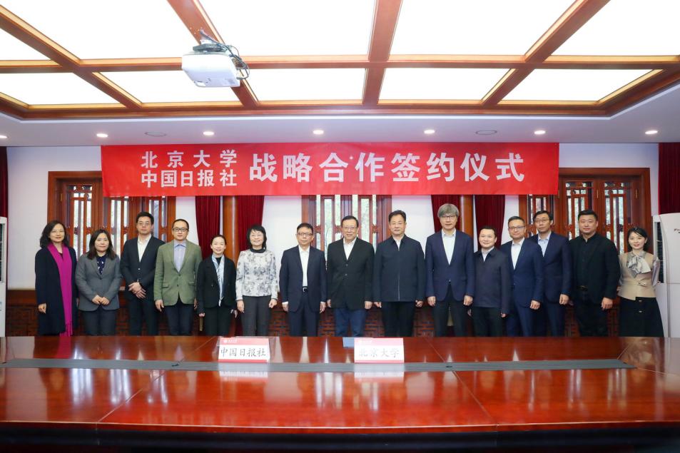 11月2日,北京大学与中国日报社战略合作协议签署仪式在临湖轩举行。北京大学校长郝平与中国日报社总编辑周树春进行座谈,就双方在媒体融合、舆论引导、国际传播、社会服务等方面的合作达成共识。北京大学党委常务副书记于鸿君、副校长王博,中国日报社编委兼秘书长朱宝霞参加座谈及签约仪式。