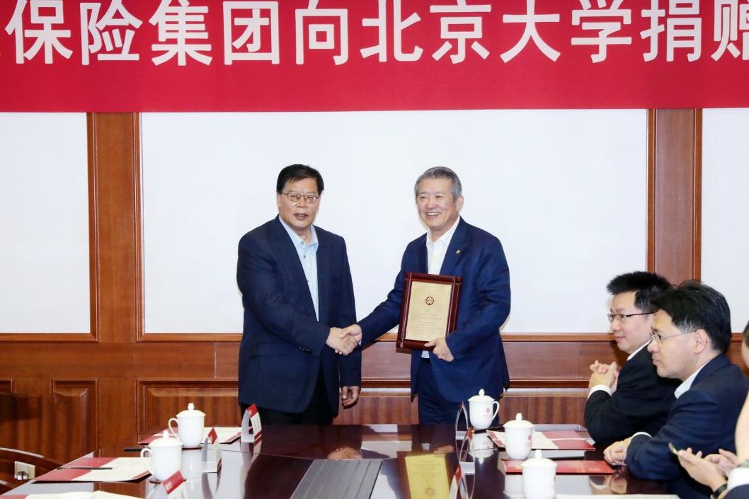 10月12日上午,由北京大学与泰康保险集团联合主办的“书翰留余韵,纸间现风云——泰康人寿捐赠司徒雷登文献展”在北京大学图书馆开展。展览开幕前,双方在北京大学临湖轩举行捐赠仪式。北京大学党委书记、教育基金会理事长邱水平,泰康保险集团董事长兼CEO陈东升,北京市文物局党组书记、局长陈名杰,国家文物局博物馆与社会文物司副司长吴旻,中国嘉德董事总裁胡妍妍,赛富投资基金创始管理合伙人、北京大学教育基金会理事阎焱,物美创始人、多点董事长张文中,汉能投资集团董事长陈宏等出席活动。北京大学校长郝平参观了文献展,北京大学党委副书记安钰峰,北京大学校长助理、秘书长孙庆伟陪同参观。捐赠仪式由北京大学副校长、教育基金会副理事长王博主持。