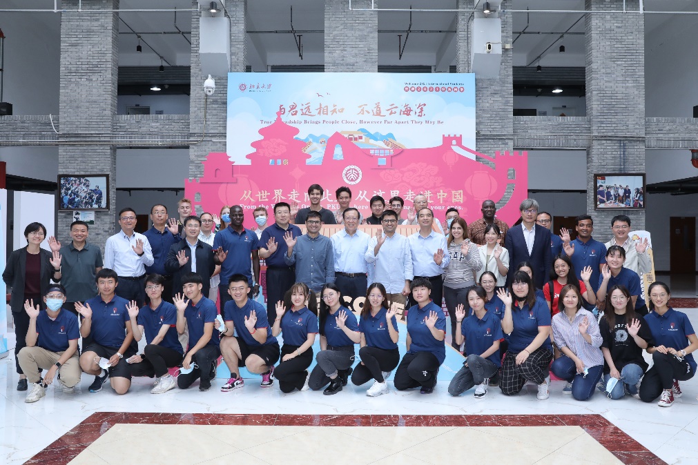 与留学生新生、港澳台新生以及志愿者等合影