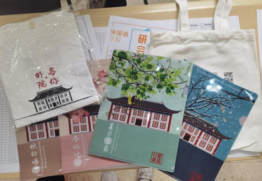 外国语学院给新同学准备了精美丰富的礼物。除了院衫与帆布袋外,2021级的研究生们还将获得印有学院春夏秋冬四时景色的一套文件夹。