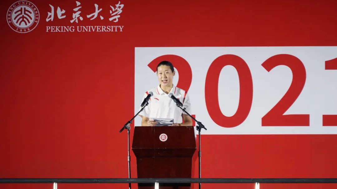 孙玉洁为新生们送上祝福,也分享了她作为现役运动员在北京大学政府管理学院读书期间的经历感受。孙玉洁“一手抓读书,一手抓训练”,在取得优异学习成绩的同时,成为了中国击剑史上第一个“大满贯”运动员。“我记得大一去参加世界杯比赛时,还背着一本重重的《经济学原理》,好沉呐!”幽默的话语赢得了北大学子的阵阵掌声。孙玉洁勉励同学们将人生的理想融入到党和国家的事业当中,努力学习,积极锻炼,认真对待每一件事情,传承北大人独有的精神品质。“我愿做一颗螺丝钉,为中国击剑事业、为中国体育事业贡献自己的力量!”